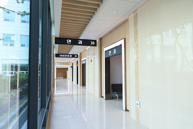 이비인후과는 귀, 코,갑상선·두경부 외과 등 질환별 진료실과 청력검사실,코기능검사실, 음성언어치료실 등을 갖췄으며,안과는 진료실 외에 시각전기생리검사실,시야검사실, 레이저치료실 등 진료 공간을 재정비했다. 특히 소아청소년과는‘음압진료실’을 신설하고 별도의 출입문을 만들어 코로나19 같은 감염병 유행 시 일반 환자와 감염병 환자의 동선을 분리할 수 있게 설계했다. 또, 수유실과 소아 전용 소변기 등 편의시설을 갖춰 소아 환자와 보호자들이 불편함이 없도록 했다.
