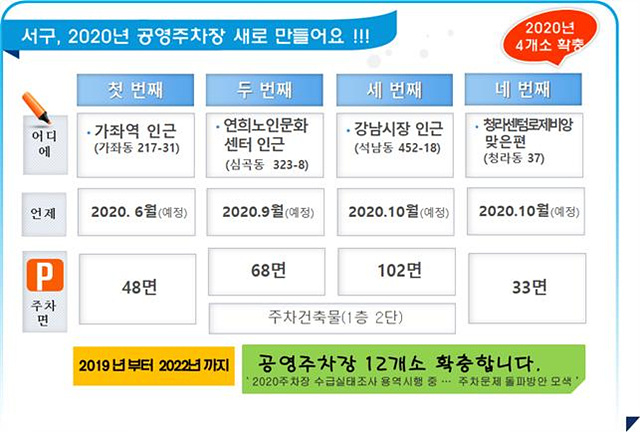 서구가 2022년까지 공영주차장 12개소를 확충한다.