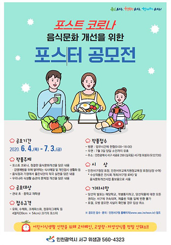 서구는 '초등·중학생을 대상으로 음식문화 개선 포스터 공모전을 개최한다.