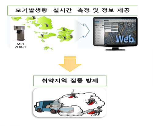 실시간 모기발생정보 모니터링은 채집·데이터 정리·정보 전달 등 전 과정이 자동화 되어 있어 기존 모기밀도조사 보다 모기발생정보 생산시간이 13배 빠르며, 생산된 발생정보 데이터는 모기방제 최일선 기관인 보건소에 매일 제공함으로써 신속하게 취약지역을 선정하여 행정력(예산, 인력 등)의 낭비 없이 효율적이고 집중적으로 선제적 방제를 할 수 있도록 사용된다.