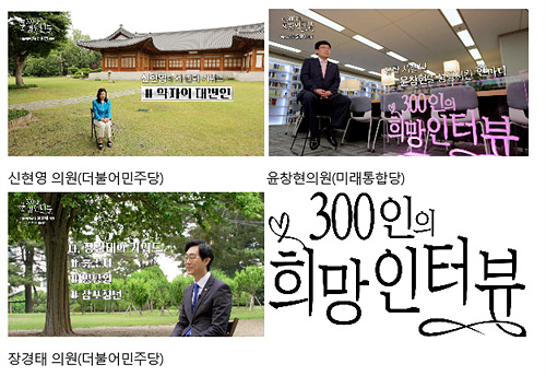 개원특집'300인의 희망인터뷰'는 제21대 국회의원들이 직접 뽑은 ‘인생의 결정적 키워드’를 통해 인생관과 인간적 면모를 살펴보고, 4년 임기의 의정활동에 대한 철학과 포부 등을 직접 들어보는 프로그램이다. 제21대 국회의원 300명 전원의 면면을 만날 수 있는 이 프로그램은 연말까지 제작·방송될 예정이다.