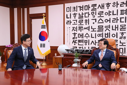 박병석 국회의장은 7일 의장집무실에서 허태정 대전광역시장을 만나 “대전에 코로나19가 빠르게 확산돼 시장님과 저 뿐 아니라 대전시민과 국민들의 걱정이 많다”면서 “코로나19 대응에 최선을 다해주길 바란다”고 말했다.