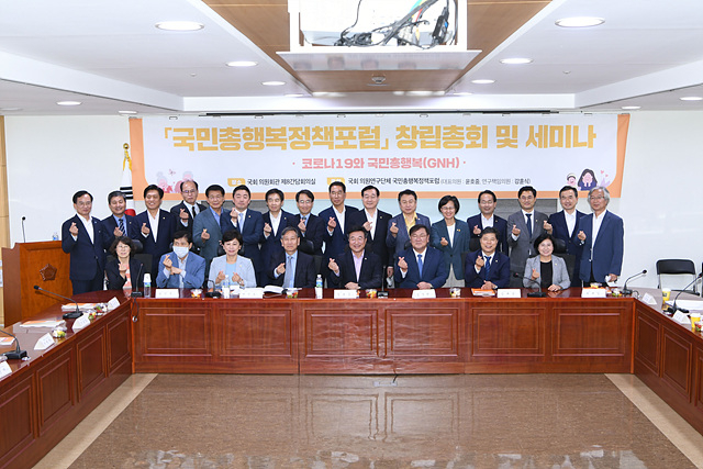 윤호중 국회 법제사법위원장(더불어민주당 사무총장,구리시)을 대표로 하고 강훈식 의원을 연구책임의원으로 한 국회연구단체 국민총행복정책포럼이 7일 힘찬 출발을 알렸다.
