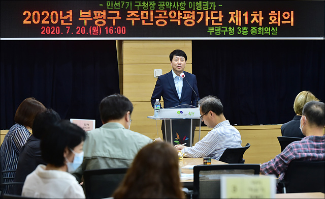 주민공약평가단은 민선7기가 시작하면서 부평구 주민 34명으로 구성됐다. 구청장 공약사항 심의·조정과 부진사업에 대한 대안제시 등 공약이행에 대한 자문과 평가 역할을 수행하고 있다.