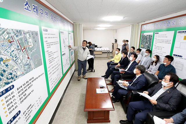'소래지구 우수저류시설 설치 사업’은 침수방지를 위해 2017년 시작된 사업으로 총 178억원이 투입되어 올해 말까지 공사를 완료할 예정이다. 시 자연재난과장은 본 사업이 완료되면 논현동 109번지 일원의 상습 침수피해를 예방할 수 있을 것이라고 말했다.