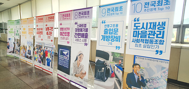 구는 최근 청사 로비에 ‘전국 최초 추진 정책 Top 10’ 배너를 설치했다