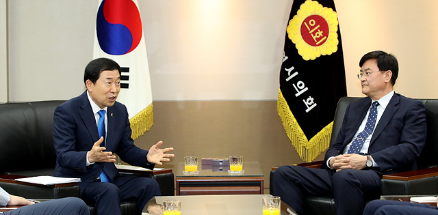 ▲ 인천시의회 신은호 의장은 송도세브란병원 서승환 연세대 총장을 병원 건립 촉구 간담회 개최 ⓒ 시의회 홍보실
