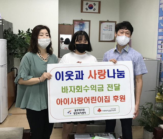 인천 서구 불로동에 위치한 아이사랑 어린이집은 어린이집 학부모와 교직원이 이웃과 사랑을 나누기 위해 함께 모금한 바자회 수익금을 불로대곡동 행정복지센터에 전달했다고 21일 밝혔다.