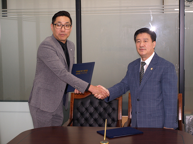 ▲ 복지TV경인방송 이진희,대표이사,노크커뮤니케이션즈 기영록대표가 업무협약후 악수를 하고 있다.ⓒ 우리일보 DB