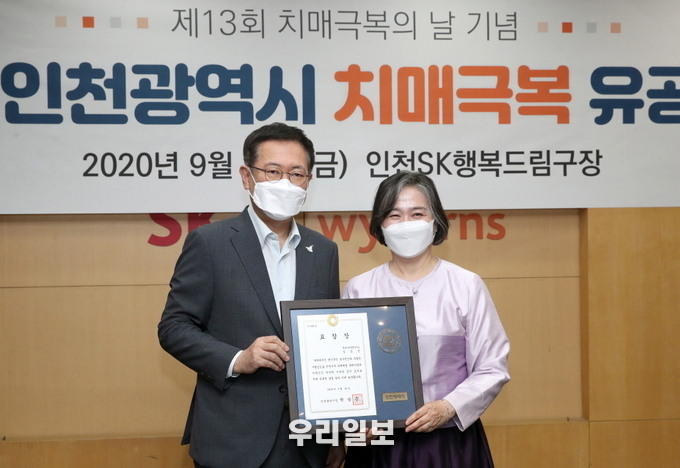 【우리일보 김용찬 기자】 인천 서구치매안심센터는 지난 18일 인천 문학 SK행복드림구장에서 개최된 제13회 ‘치매 극복의 날’ 기념행사에서 서구치매안심센터 메타기억교실 김은선 강사가 치매 극복 유공자로 선정돼 인천시장 표창을 받았다.