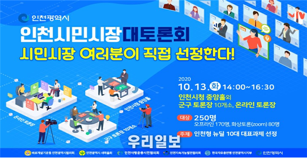 【인천=김용찬 기자 】 인천시가 오는 10월 13일 코로나19 위기극복 및 지역경제 회복을 위한 ‘인천형 뉴딜 10대 대표과제 선정’을 주제로 '인천 시민시장 대토론회' 를 개최한다.