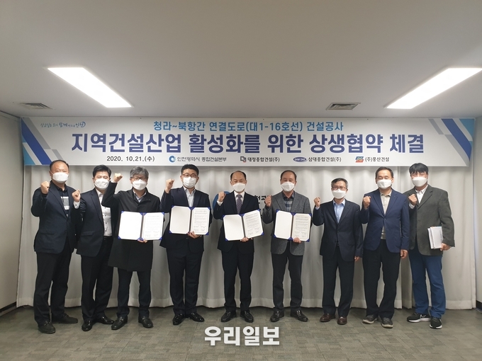 【인천=김용찬 기자 】 인천시 종합건설본부가 21일 '청라~북항간 연결도로(대1-16호선) 건설공사' 시공업체 대표와 지역건설산업 활성화 추진을 위한 상생협약을 체결했다.
