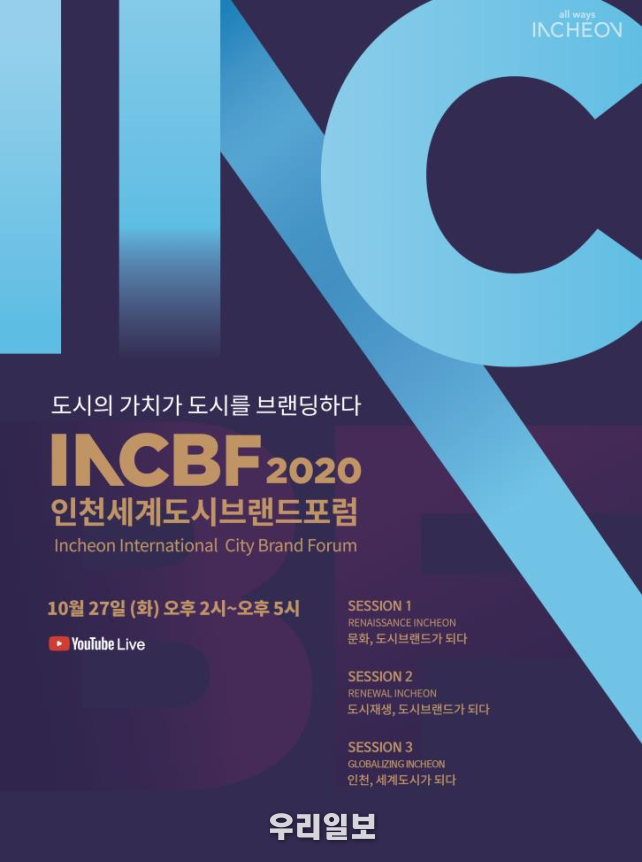 인천시는 집단지성을 통한 창조적인 발상과 포스트코로나 시대 도시브랜딩의 해답을 찾는‘2020 인천세계도시브랜드포럼’을 27일 온라인으로 개최한다.