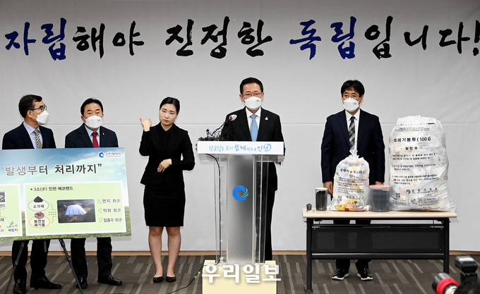 박 시장은 이날 인천시청에서 ‘친환경 에코랜드(가칭) 및 자원순환센터(가칭) 기본 추진 구상 발표’를 갖고 “시민 여러분께 ‘쓰레기 독립’에 이은 두 번째 약속을 밝히고자 한다. ‘자립해야 진정한 독립’”이라며 이 같이 밝혔다.