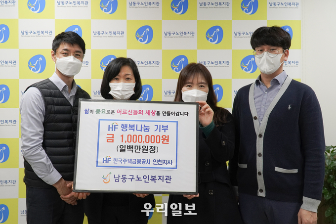 한국주택금융공사 인천지사는 11월 20일, 남동구노인복지관을 찾아 기부금 100만원을 전달했다.