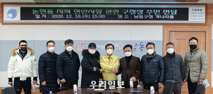 17일 남동구에 따르면 이강호 구청장은 16일 남동구청에서 두 차례에 걸쳐 ‘논현동 입주자대표 회장단’, 온라인 커뮤니티 ‘논현동 총연합회’ 운영진과 면담의 자리를 가졌다.