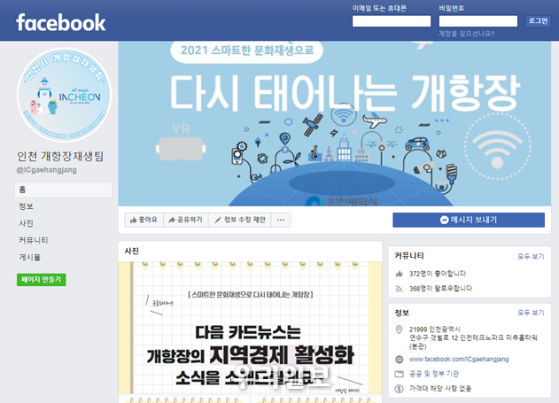 인천 개항장재생팀 페이스북 페이지에서는 2021년 새롭게 변화하는 개항장에 대한 정책사업 소개를 시작으로, 스마트한 개항장의 변화를 지속 알려나갈 예정이다.