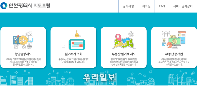 그동안 인천시는 '인천시 지도포털' 을 통해 1985년부터 현재까지 매년 구축한 항공영상 열람서비스를 시행해시민의 재산관리 및 각종 지형·지물의 관련 정보 확인 등 다양한 분야에서 활용 할 수 있도록 제공하고 있다.