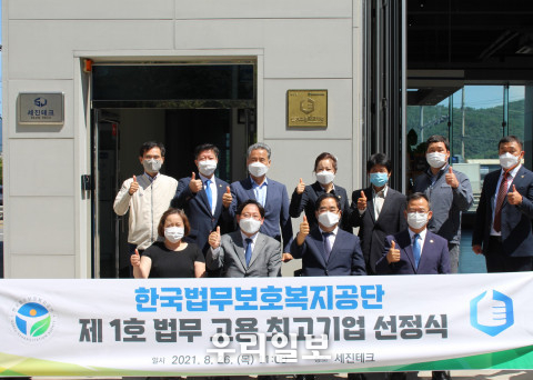 한국법무보호복지공단(이사장 신용도)은 8월 26일(목) 편견 없는 고용으로 출소자 채용에 힘쓰고 있는 세진테크(대표 김양경)를 제1호 ‘법무 고용 최고기업’으로 선정했다.