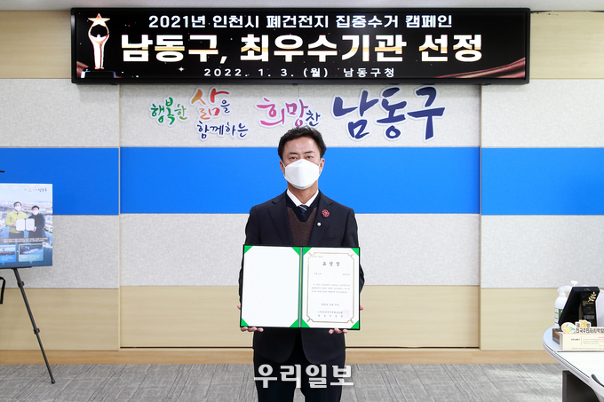 인천시 남동구가 지난해 인천시가 진행한 폐건전지 집중 수거 캠페인 기간 동안 10개 군·구 중 가장 높은 실적을 거둬 최우수 기관에 선정됐다고 4일 밝혔다.