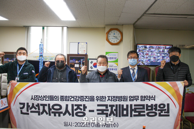 보건복지부지정관절전문 국제바로병원은 간석자유시장 상인회와 시장상인들의 척추관절 응급진료 및 코로나 19방역지원을 함께 약속하고자 지난 19일 진료협약을 체결했다. 이날 협약식은 이병근 상인회장, 오현교 단장, 윤관석 국회의원 보좌관 문이환 국장 그리고, 국제바로병원 박기동 원무부장, 김종환 기획실장 등이 참석했다.