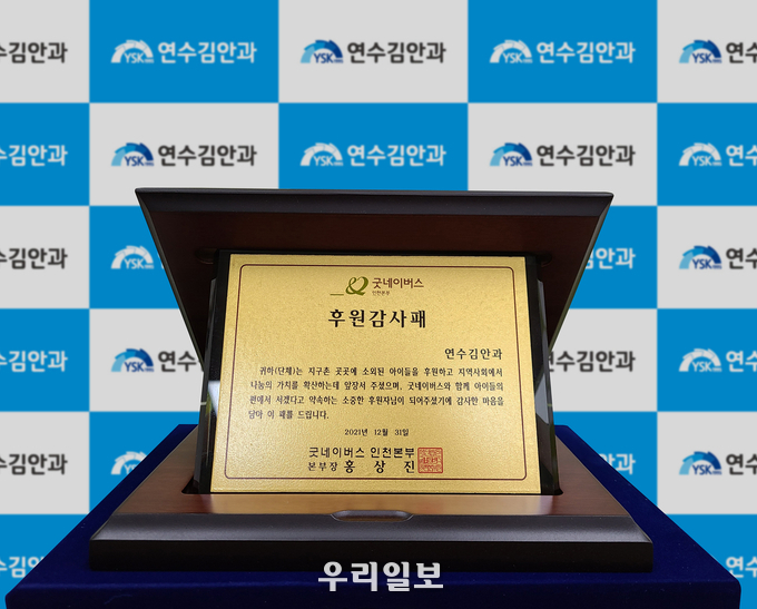 굿네이버스 인천본부(본부장 홍상진)는 지난 8일 연수김안과(대표원장 김학철)에 후원 감사패를 전달했다.