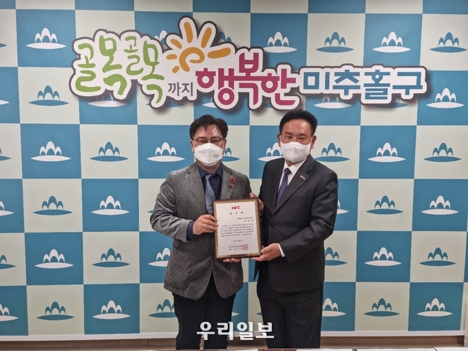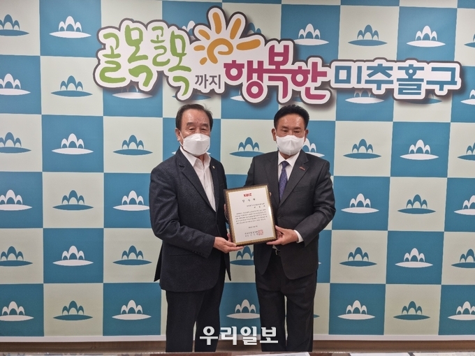 중소기업중앙회 인천지역본부(인천중소기업회장 이순종)는 인천지역 중소기업·소상공인이 감사의 뜻을 모아 인천시 미추홀구 중소기업협동조합 육성 조례 제정에 기여한 김정식 미추홀구청장, 배상록 미추홀구의원에게 감사패를 전달했다.