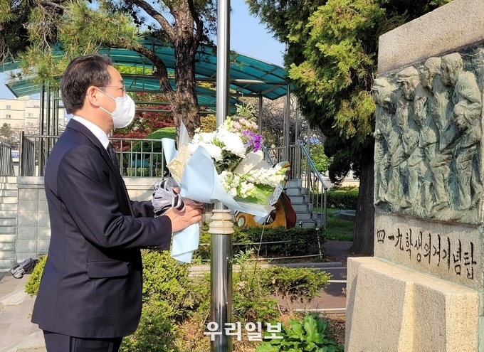 유 예비후보는 이날 페이스북에 4‧19 혁명 62주년을 맞아 인천기계공고 4‧19 학생의거기념탑에 헌화‧묵념했다는 내용의 글을 올리고 “민주주의를 심기 위한 선열들의 숭고한 희생 정신에 경의를 표했다”며 이렇게 밝혔다.