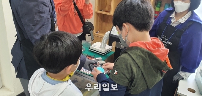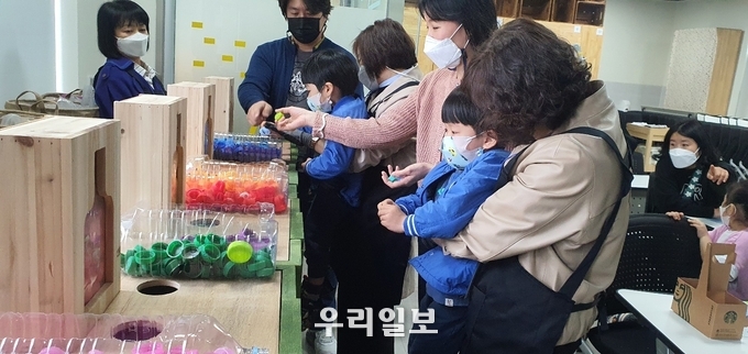 이날 행사에 참여한 40여명의 학생과 주민들은 집에서 수집한 플라스틱 병뚜껑을 가져와 가공하기 좋게 분쇄하고 분쇄된 병뚜껑에 열을 가하고 압축·가공해 화분세트 등 업사이클링 제품을 직접 만들어보는 시간을 가졌다.