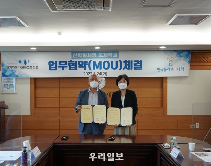 한국폴리텍Ⅱ대학(학장 이상호)은 24일 올해 고교단계 일학습병행 공동훈련센터 지원사업의 원활한 운영을 위해 경기자동차과학고등학교와 업무협약(MOU)을 진행했다.