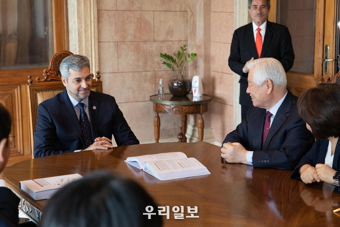 파라과이, 아르헨티나, 브라질 등 남미 3개국을 방문 중인 국제청소년연합(IYF) 설립자 박옥수 목사가 마리오 압도 베니테스(Mario Abdo Benitez) 파라과이 대통령과 만났다.