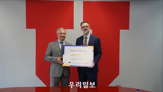 유타대학교 아시아캠퍼스(대표 그레고리 힐)는 주한 우크라이나 대사를 초청해 전쟁 난민을 위한 기부금 전달식을 가졌다고 20일 밝혔다.