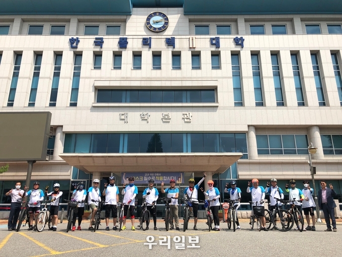 춘천캠퍼스 학장, 소속 교직원 및 재학생 11명으로 구성된 자전거홍보단은 지난 17일 춘천캠퍼스를 시작으로 11일간 학교법인과 인천캠퍼스를 경유해 아산, 전주, 광고, 순천, 진주, 창원, 대구, 충주캠퍼스를 지나 다시 춘천으로 이어지는 총 1399km의 대장정에 나섰다.