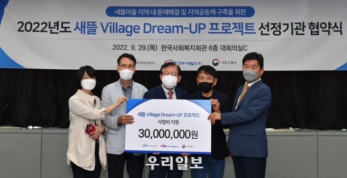 한국사회복지협의회(회장 서상목)는 29일 서울 마포구 소재 한국사회복지회관에서 한국사회복지협의회, 한국서부발전(주)(사장 박형덕), 국토교통부(장관 원희룡)가 주관·주최 및 후원하는 새뜰 Village Dream-UP(새뜰 빌리지 드림업) 프로젝트 선정기관 협약식을 개최했다.