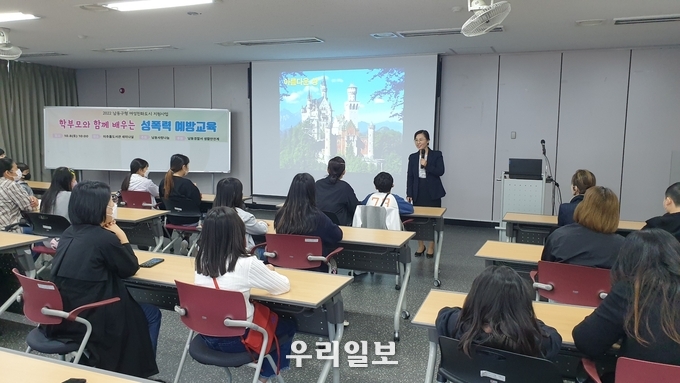 학부모와 함께 배우는 성폭력 예방교육이라는 주제로 실시한 이번 교육은 올해 남동구형 여성친화도시 공모사업의 일환으로 남동구청 여성가족과와 남동경찰서 생활안전계의 공동후원으로 미추홀도서관 세미나실에서 진행됐다.