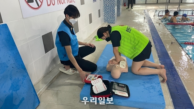 공단은 응급상황 대응훈련으로 ▷익수자 발생 시 구조 방법 ▷심정지 환자 심폐소생술 ▷자동제세동기 사용 방법 ▷비상벨 작동 시 행동 요령 ▷골절 부상 환자 응급처치 등 수영장에서 발생할 수 있는 안전사고의 가상 시나리오에 따라 진행됐다.