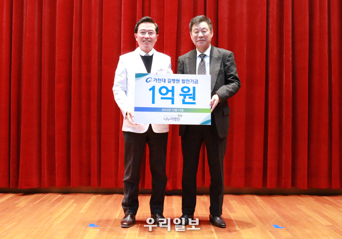 나누리병원은 협약 체결 후 가천대 길병원에 병원발전기금 1억 원을 전달했다.