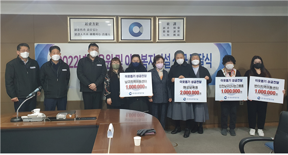 【인천 - 김선근 기자】인천 미추홀구에 본사를 두고 있는 ㈜창보종합건설은 12월 22일 오전 10시 사옥 7층 대회의실에서 해성보육원, 미추홀구지역아동센터, 반디지역아동센터, 인천 미추홀구신나는그룹홈에 성금 전달식을 가졌다. ㈜창보종합건설은 매년 지속적인 후원을 이어오고 있으며, 성금은 보육원 및 아동복지시설에 사용될 예정이다.