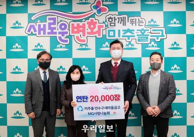 미추홀구·연수구 새마을금고 MG 사랑나눔회는 4일 저소득 주민을 위한 연탄 2만 장 을 인천 미추홀구에 기탁했다.