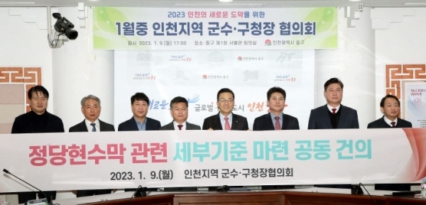 【인천 - 김선근기자】인천 중구가 지난 9일 중구청 서별관 회의실에서 인천지역 군수·구청장, 인천시 정무부시장 등이 참석한 가운데 2023년 1월중 민선8기 인천지역 군수·구청장 협의회를 개최했다고 밝혔다.