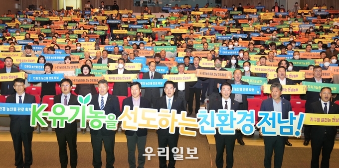 전라남도는 15일 도청에서 ‘2023 유기농 실천 다짐대회’를 개최, 친환경농업 적극 실천을 통한 대도약 전남행복시대를 열 것을 결의하고, 친환경농업인의 중지를 모아 농협중앙회와 농협은행 본사 전남 이전을 촉구했다.