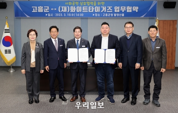 전남고흥군은 3월 15일 군청 팔영산홀에서 재단법인 화이트타이거즈(대표 이종선)와 사회적 약자를 위한 사회공헌 강화 및 협력을 위한 업무협약을 체결했다고 밝혔다.