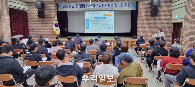 고흥군이 3월 13일 고흥 문화회관에서‘2023년 상반기 귀농ㆍ어 창업 및 주택구입 지원사업’설명회를 개최하고 귀농ㆍ어 창업 사업 추진에 본격적으로 나섰다.