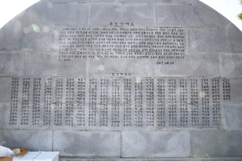 올해로 32주기를 맞고 있는 추모 위령제는 당시 참사로 숨진 희생자들의 명복을 빌고 아직도 슬픔에서 벗어나지 못하고 있는 유가족들을 위로 하기 위해 사고해역을 정면으로 바라보고 있는 위령탑 현지에서 매년 10월 10일 열리고 있다.