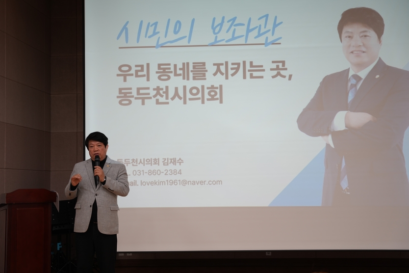 【우리일보 이정희 기자】 동두천시의회 김재수 의원은 지난 19일 동두천시 노인복지관에서 대한노인회 동두천시지회 노인대학 학생 150명을 대상으로 특별 강연을 진행했다.