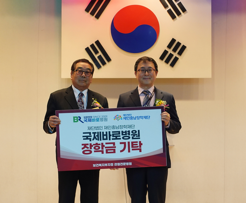 국제바로병원은 지난 22일 인천동부교육지원청 강당에서 열린 제18회 재인충남장학재단 장학금 전달식에 참석해 장학금을 전달했다.