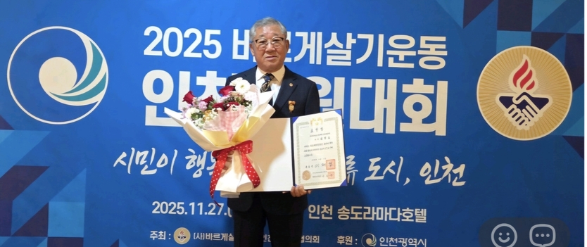 【우리일보 인천=이진희 기자】 바르게살기운동 옹진군협의회 김철호 회장이 ‘2025년 바르게살기운동 인천 회원대회’에서 최고 영예인 ‘대통령 표창’을 수상했다고 28일 밝혔다.