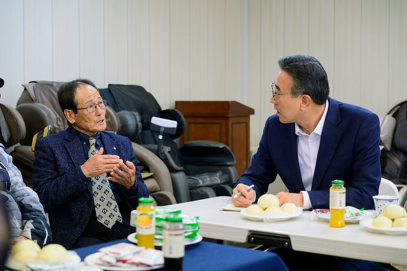 【우리일보 노연숙 기자】 오순문 서귀포시장이 12월4일 『현문현답(現聞賢答)』 민생현장-정방동경로당을 방문하여 관계자들과 대화의 시간을 가졌다.