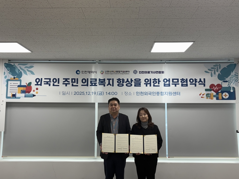 김현경 인천외국인종합지원센터장과 최한규 인천의료기사연합회 위원장은 “정기적인 협의체를 운영해 의료 서비스의 범위를 지속적으로 확대하고, 외국인 주민들이 건강한 삶을 영위할 수 있도록 최선을 다하겠다”고 화답했다.
