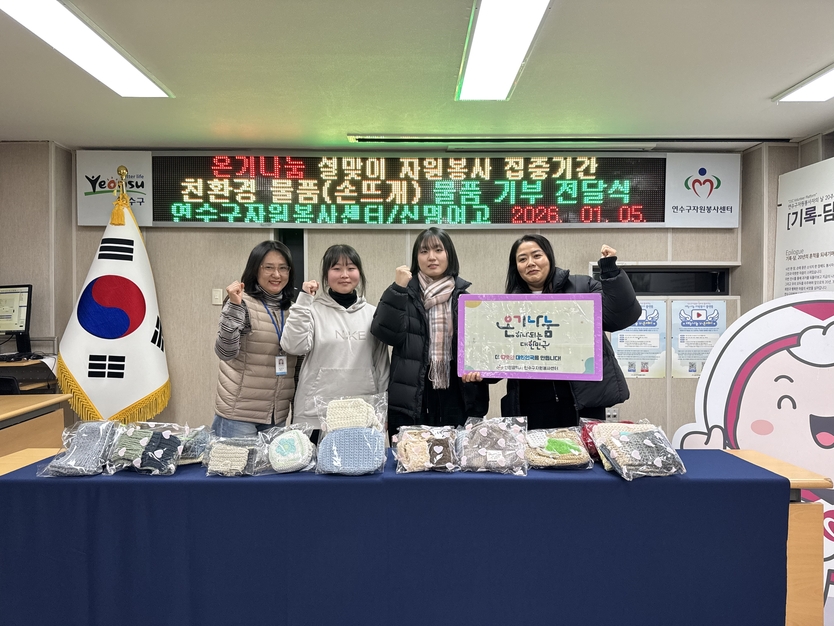 【우리일보 인천=최은준 기자】 | 연수구 원봉사센터는 지난 5일, 신명여자고등학교 뜨개질 봉사단‘뜨봉단’으로부터 직접 제작한 친환경 물품 및 방한용 손뜨개 물품 20여 점을 전달받았다고 밝혔다.